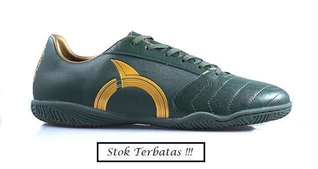 Rekomendasi sepatu futsal murah kedua yang tidak kalah menarik adalah series Mirage in Darkgreen Gold. Hm, saya menyukai produk Horizon in Black Silver diatas karena netral tetapi entah mengapa saya juga jatuh hati dengan series ini. Kalau dipikir-pikir, desain dan warnanya sangat unik. Jarang-jarang ada yang menjual sepatu dengan warna hijau gelap. Yah, saya mengatakannya sangat langka. Walaupun warna tua tetapi dikombinasikan dengan warna kuning gold, tampilannya jadi mewah dan memukau.