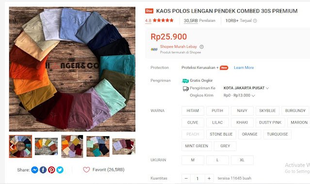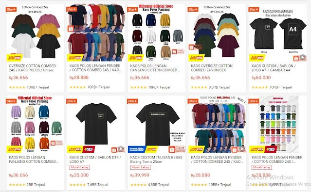 Menurut saya benar banget sih, bukan bualan penjual semata. Rata-rata produk kaos disini telah terjual lebih dari 10.000 pcs dengan penilaian 4.9 dari skala 5.0 oleh pembeli. Ini berarti hampir sempurna. Dari segi ketebalan, tersedia pilihan katun combed 24 S dan 30 S. Sementara itu, variasi modelnya lumayan beragam seperti kaos polo kerah, kaos shanghai, twotone misty, kaos henley, lengan pendek, lengan panjang hingga tank top sleeveless. Ada sekitar 90 an jenis produk yang terpajang di etalase.