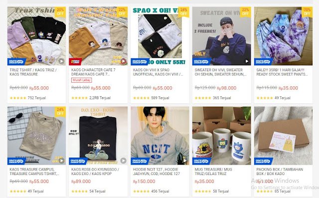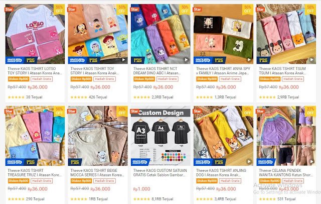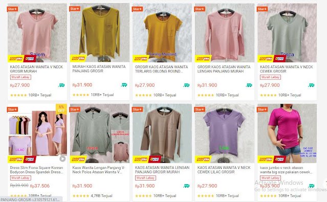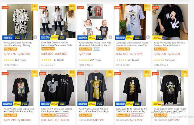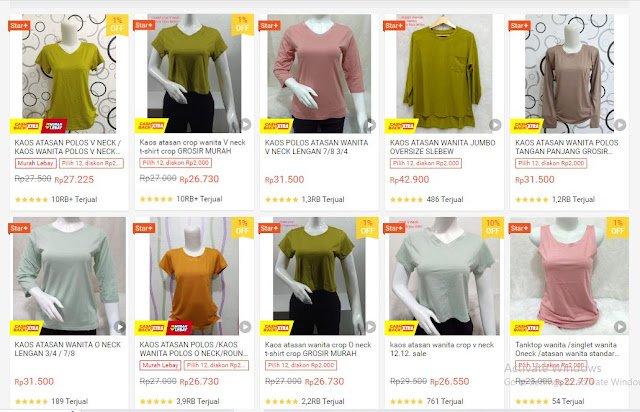 Seller terakhir ini termasuk salah satu toko fashion yang menjual berbagai kebutuhan pakaian terlengkap. Tidak hanya baju wanita tetapi juga tersedia mulai dari pakaian bayi, anak hingga pria. Diantara kategori produknya yaitu baju t-shirt atasan, sweater, cardigan, celana pendek, celana panjang, hoodie, sweatshirt, celana panjang jeans dan sebagainya. Kalau dihitung, secara keseluruhan total jenis produk yang dipajang di etalase mencapai 253 macam produk. Lumayan banyak. Nah, sebagian besar merupakan kaos. So tidak heran kalau kaos menjadi produk paling laris disini.