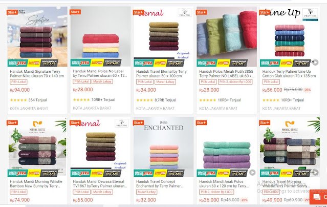 Disamping itu, juga tersedia merek lain seperti Cotton Club, Signature dan lainnya. Seller yang berasal dari Jakarta Barat ini telah 3 tahun bergabung di Shopee dan saat ini memiliki sekitar 178 produk di etalase. Tidak hanya handuk dewasa, juga ada buat bayi dan anak-anak. Handuk mandi polos murah ukuran 60×120 cm No Label dan handuk Terry Palmer Line Up Cotton Club merupakan dua diantara produk dengan penjualan tertinggi. Masing-masingnya dibanderol Rp 26.000 dan Rp 53.000.