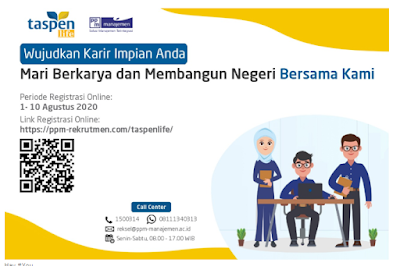 - Seluruh kegiatan seleksi online melalui https://ppm-rekrutmen.com/taspenlife