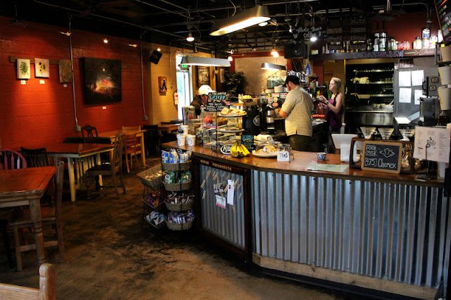 Poto credit: handground.com Model contoh yang sangat simpel dan banyak menggunakan barang-barang bekas di sulap kembali menjadi barang baru hanya butuh sentuhan seni diprioritaskan kembali. Seperti seng di meja Barista dan sampai ke kasir ditambah dengan kayu yang telah diserut lalu di vernis untuk meningkatkan pencerahan kayu yang akan dipakai. Begitu juga dengan furniture untuk pelangan tidak perlu mahal, banyak hasil recycle yang ditonjolkan untuk mengurangi biaya belanja modal. Dari gambar ini sangat jelas terlihat pemilik coffee shop menjadikan bisnis mereka sesuai dengan karakter yang juga terlihat cozy sebagai lokasi nongkrong anak kuliah bahkan sebagian karyawan kantoran yang masih memperhatikan harga sebagai pertimbangan untuk datang. Di atas meja juga ada beberapa jenis makanan ringan hingga buah sebagai pendamping saat duduk dan lukisan di dinding diberi tata cahaya sehingga terlihat lebih estetik untuk sebuah suasana. Jadi pola ini dapat juga anda adopsi barang yang ada disekitar yang masih dapat dimanfaatkan tetap cantik terlihat apabila anda mempunyai skill untuk menghadirkannya. |