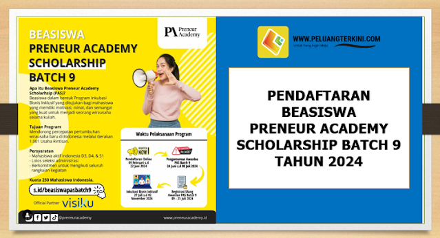 Dibuka! Pendaftaran Beasiswa Preneur Academy Scholarship (PAS) Batch 9 Tahun 2024