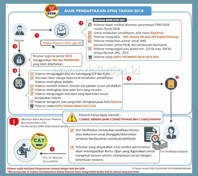 Sebelum Anda mulai mendaftar seabaiknya mndowload dan membaca petunjuk-petunjuk yang ada di dalamya, sehingga tidak ada kekeliruan yang sifatnya adminisratif. Akses portal Sscn.bkn.go.id dibuka Rabu (19/9/2018) pukul 13.00 WIB. Pelamar pendaftaran CPNS 2018 dihimbau untuk membaca panduan pendaftaran CPNS yang sudah disiapkan oleh Badan Kepegawaian Negara (BKN).