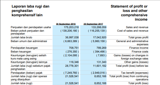 31-desember-2018. Laporan keuangan periode Quarter 3 2018 mencakup
