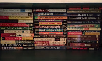 Sebagai informasi, buku-buku main/trading/investasi saham yang masih sering saya baca tidak berada di ruang kerja tapi berada di meja samping tempat tidur, di atas meja TV, atau di rak di dalam kamar mandi.