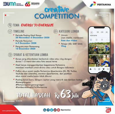 bentuk foto, video, atau vlog melalui Lomba Creative Competition yang diadakan PT. Pertamina (Persero). Lomba