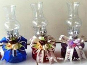 Produsen suvenir pernikahan, ulang tahun hingga pesta kelahiran bayi dituntut terus menelurkan karya baru agar tak ditinggalkan pelanggan. Salah satu yang tengah ngetren adalah suvenir berbentuk lampu teplok berukuran mungil. Belakangan, permintaan suvenir dengan bentuk teplok terus meningkat.