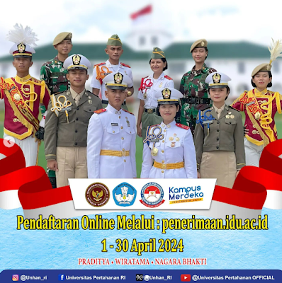 Republik Indonesia Tahun Ajaran 2024 – 2025 dapat diakses melalui Instagram @unhan_ri atau melalui laman https://penerimaan.idu.ac.id/