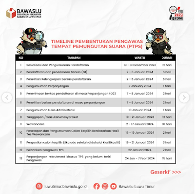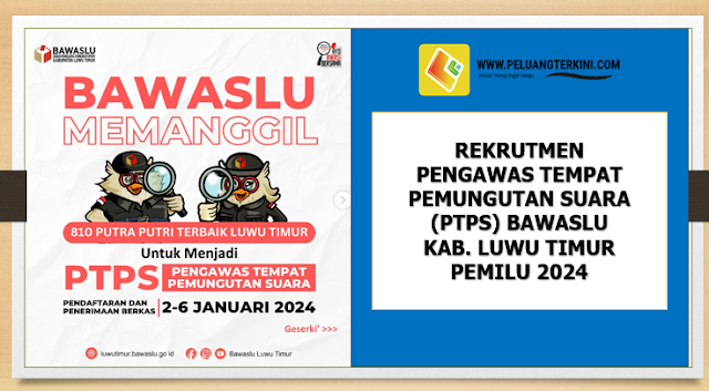 Informasi Rekrutmen Calon Pengawas Tempat Pemungutan Suara (PTPS) Bawaslu Luwu Timur untuk Pemilu 2024