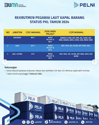 | Informasi Rekrutmen Pegawai Laut Kapal Barang Status PKL PT PELNI Tahun 2024 (Foto: Instagram @pelni162) |