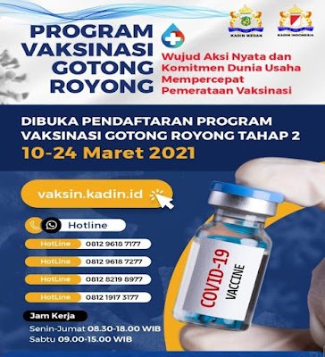 Sebagai bentuk komitmen dan aksi nyata dunia usaha untuk memutus mata rantai pandemi Covid-19, Kamar Dagang dan Industri (KADIN) Indonesia melakukan pendataan bagi perusahaan yang berminat mengikuti program VAKSINASI GOTONG ROYONG.